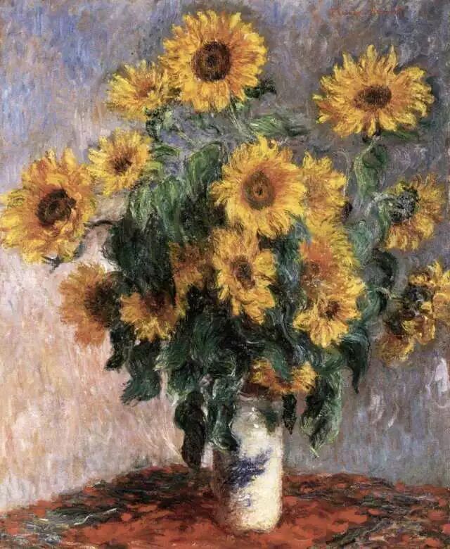 在春日里 最让人心动的 应该就是那些娇嫩鲜艳的花朵了吧 没有哪个女生能逃脱它的迷人魅力 为了留住这份春日的美好 我们可以执起手中的画笔 将百花盛放的芬芳记忆留在了画纸上 比如用水彩画一束清透梦幻的花束 飞乐鸟 格格老师的水彩花卉作品 也可以用油画的方式 画一朵金灿灿的向日葵 莫奈《一束向日葵》 不同画种表现出花卉不同的魅力 油画特有的质感则画出了花的另一种美 绘画大师莫奈笔下的油画花卉作品 就用光与影画出了花的细腻美感