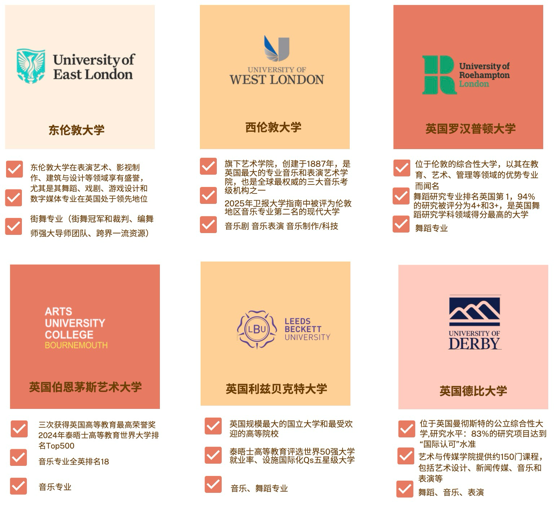 唯一性1:国内唯一舞蹈专业对口,如街舞、流行舞、芭蕾舞、国际标准舞直送对口国外学校对口专业。